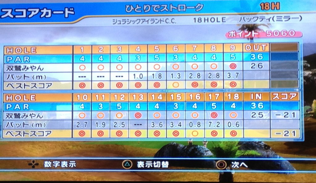 ワンミラで3回スパりました。最後18Hではカップをなめてあわやアルバ
