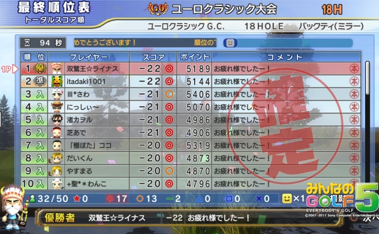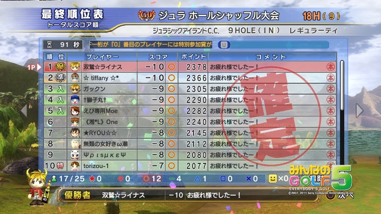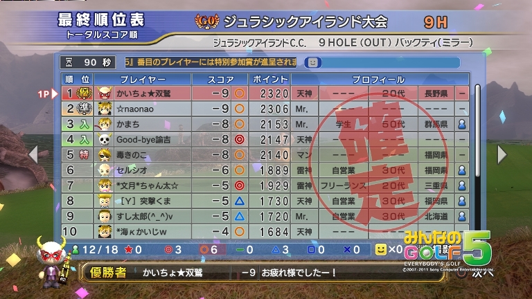 1ミスありましたが、ロングイーグル決めて安定したまま最後まで・・・