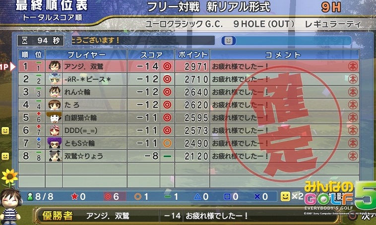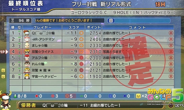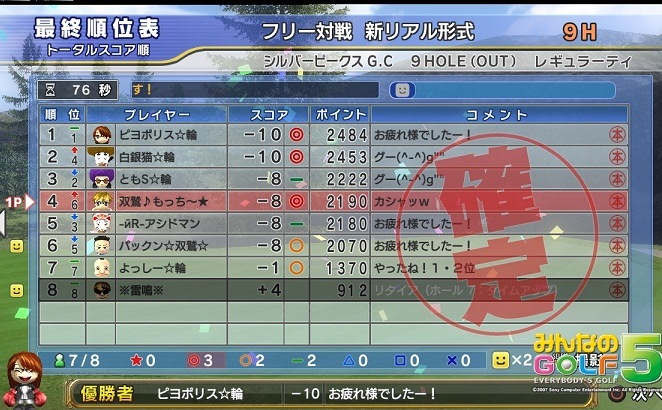 輪さん・・・68P(4ミラクル) NRさん・・・17P(1ミラクル) 双鷲・・・21P(5ミラクル)