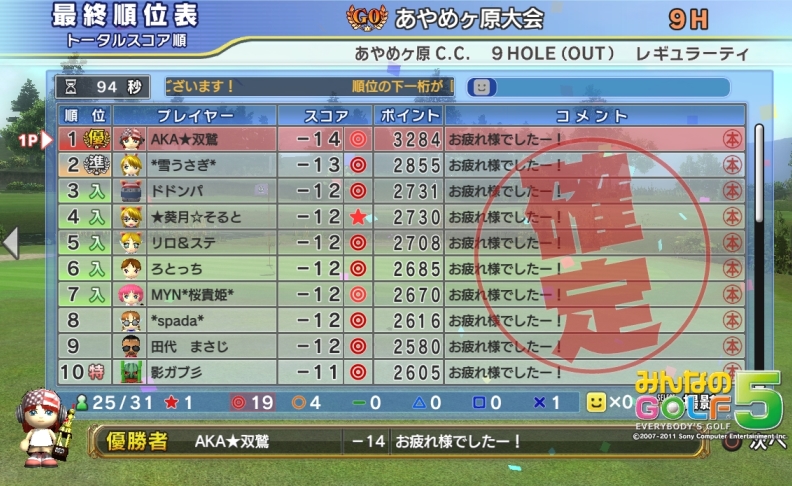 みやんがG0「あやめBOUT・9H、ラフ+2」大会で優勝しましたV